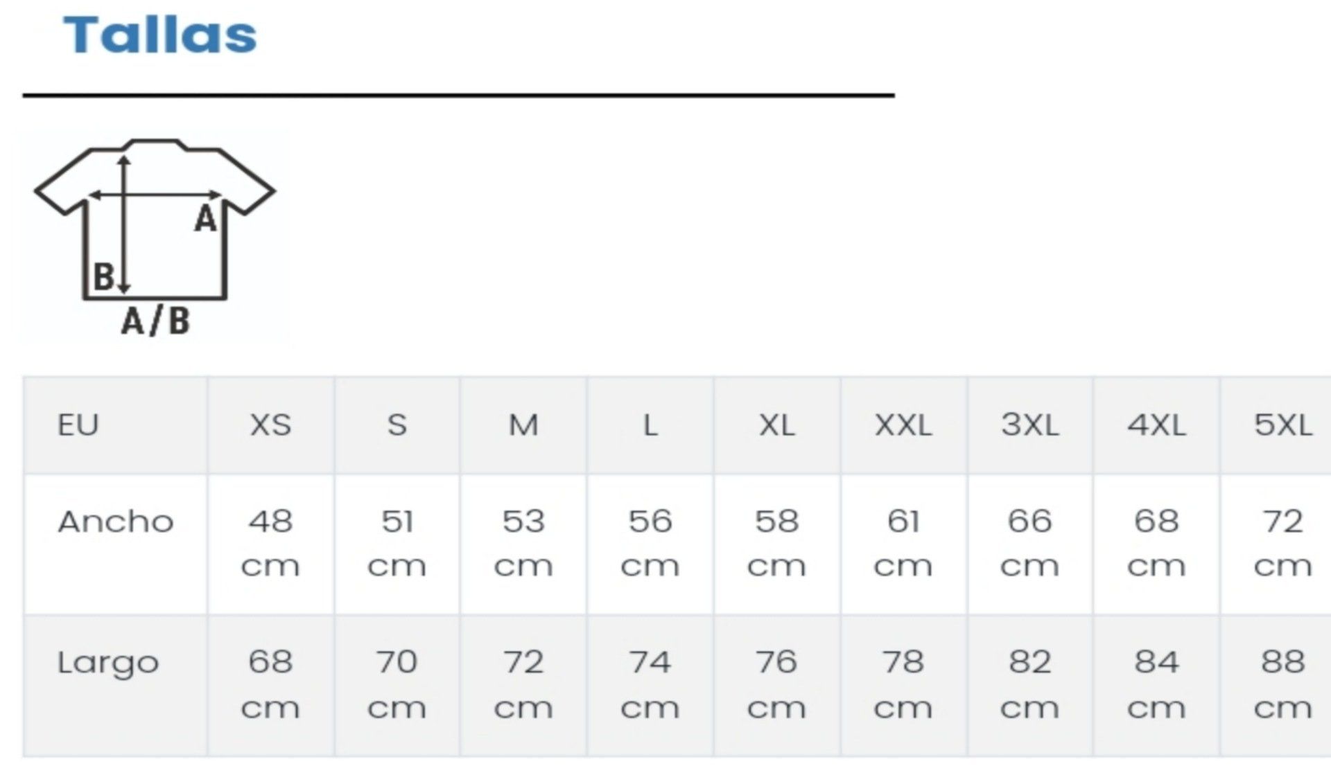 Para las tallas 3XL a 5XL + 0'90€ solo disponibles colores: 1, 2, 3, 4, 5, 9, 18 y 27.